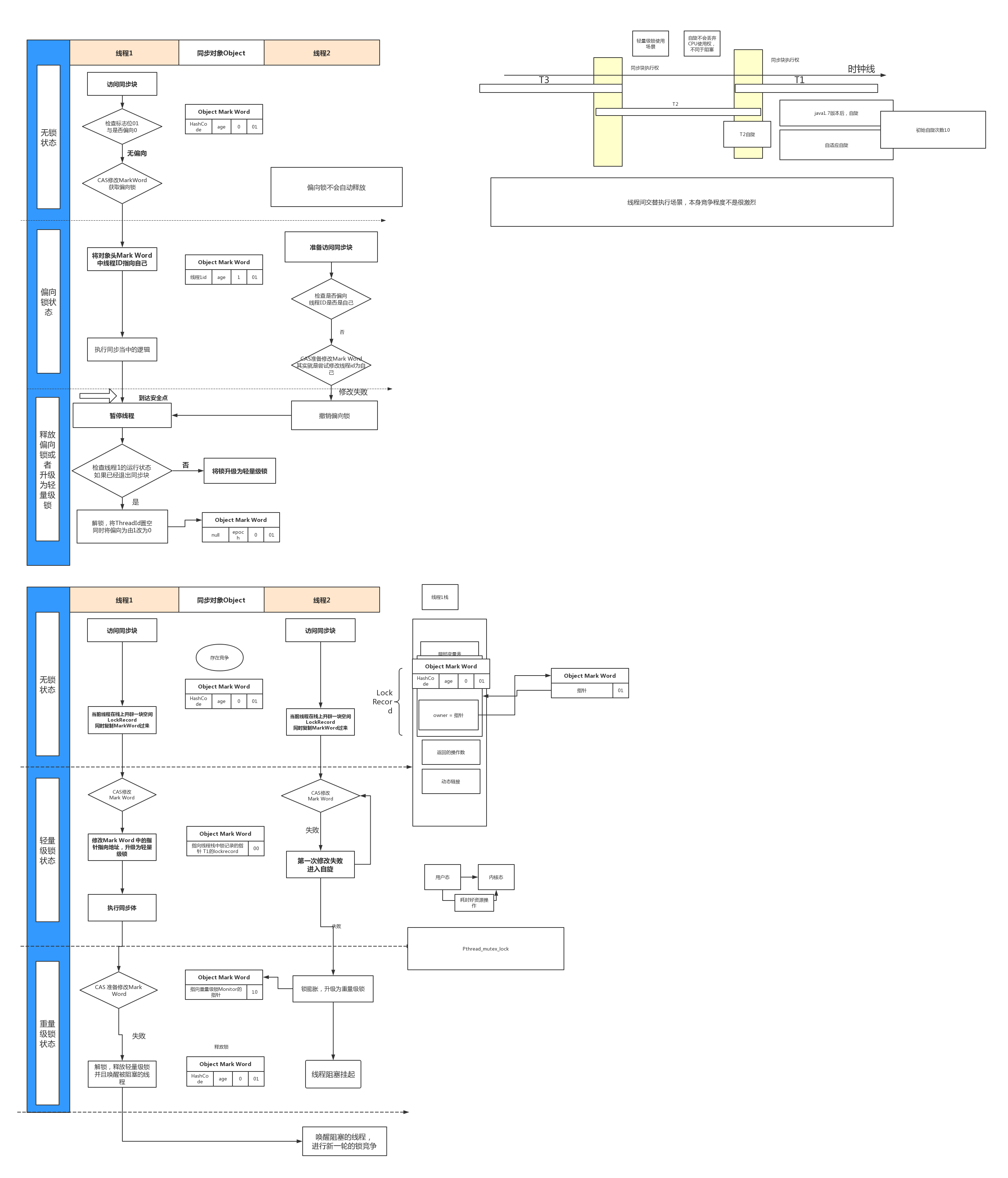 举个案例,类似锁消除的concatString()方法。如果StringBuffer sb = new StringBuffer();定义在方法体之外,那么就会有线程竞争,但是每个append()操作都对同一个对象反复加锁解锁,那么虚拟机探测到有这样的情况的话,会把加锁同步的范围扩展到整个操作序列的外部,即扩展到第一个append()操作之前和最后一个append()操作之后,这样的一个锁范围扩展的操作就称之为锁粗化。