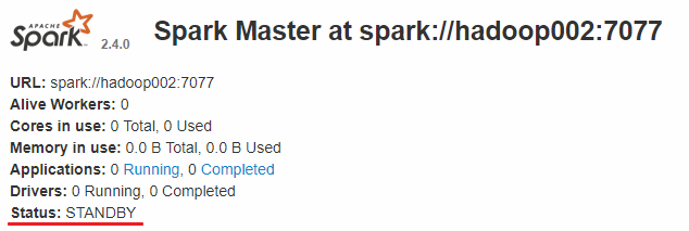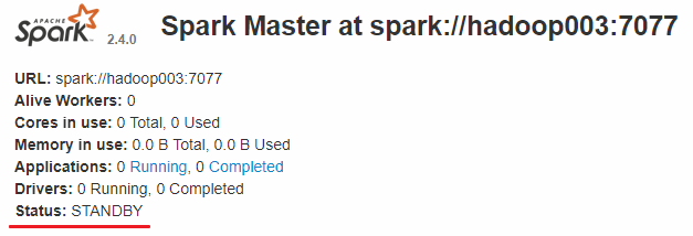 而 hadoop002 和 hadoop003 上的 Master 节点均处于 STANDBY 状态,没有可用的 Worker 节点。