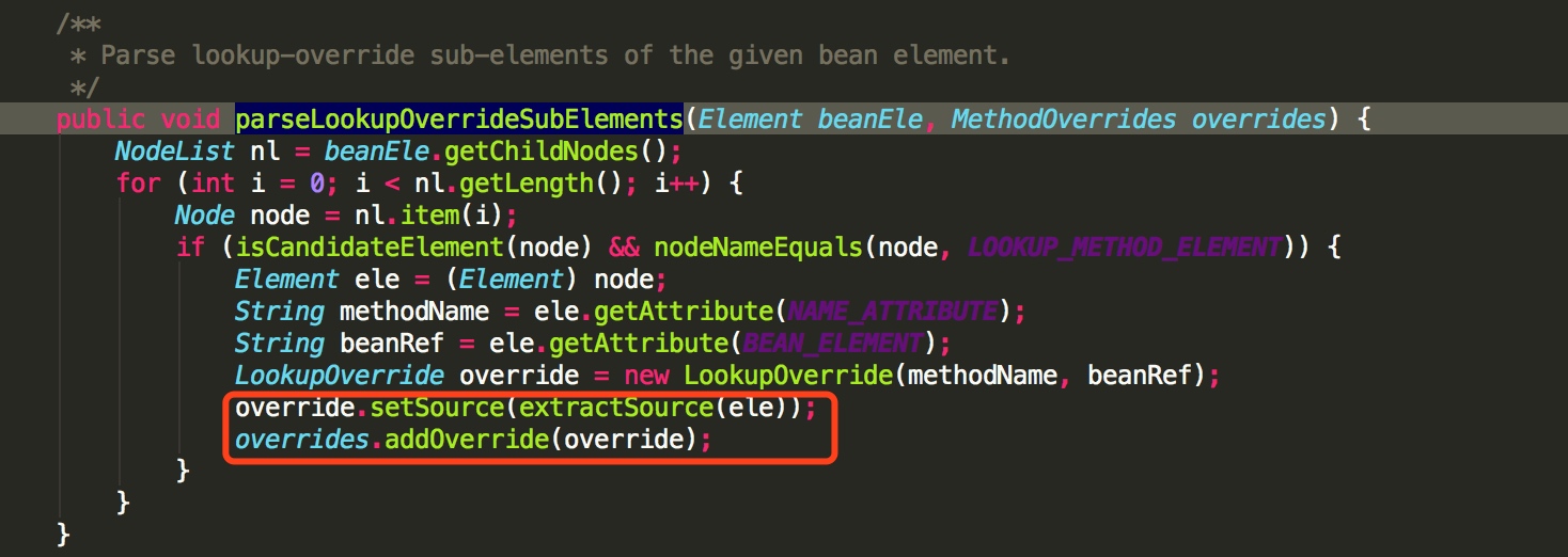 其中,#parseLookupOverrideSubElements(…) 源码如下: