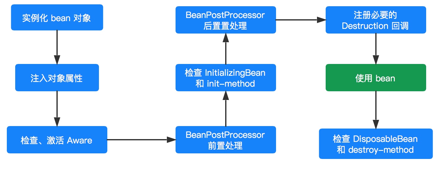 - 到这里一个 bean 也就完成了它的一生。