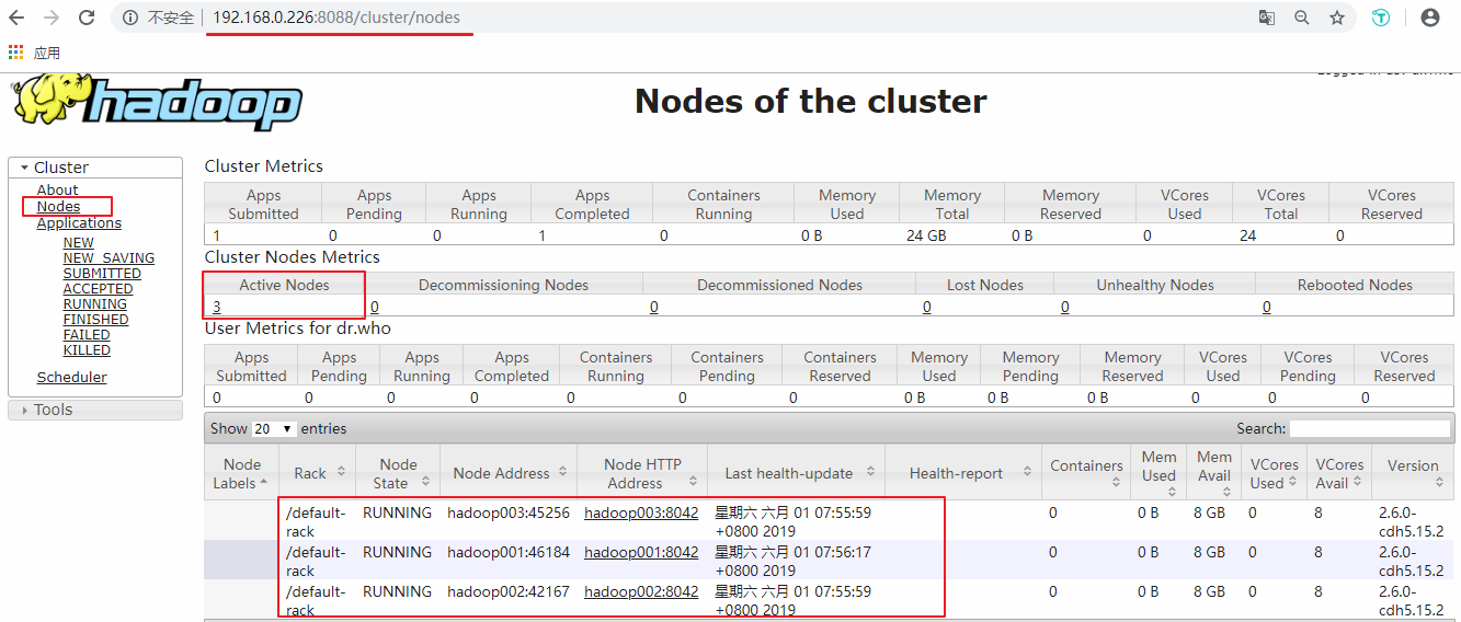 接着可以查看 Yarn 的情况,端口号为 8088 :
