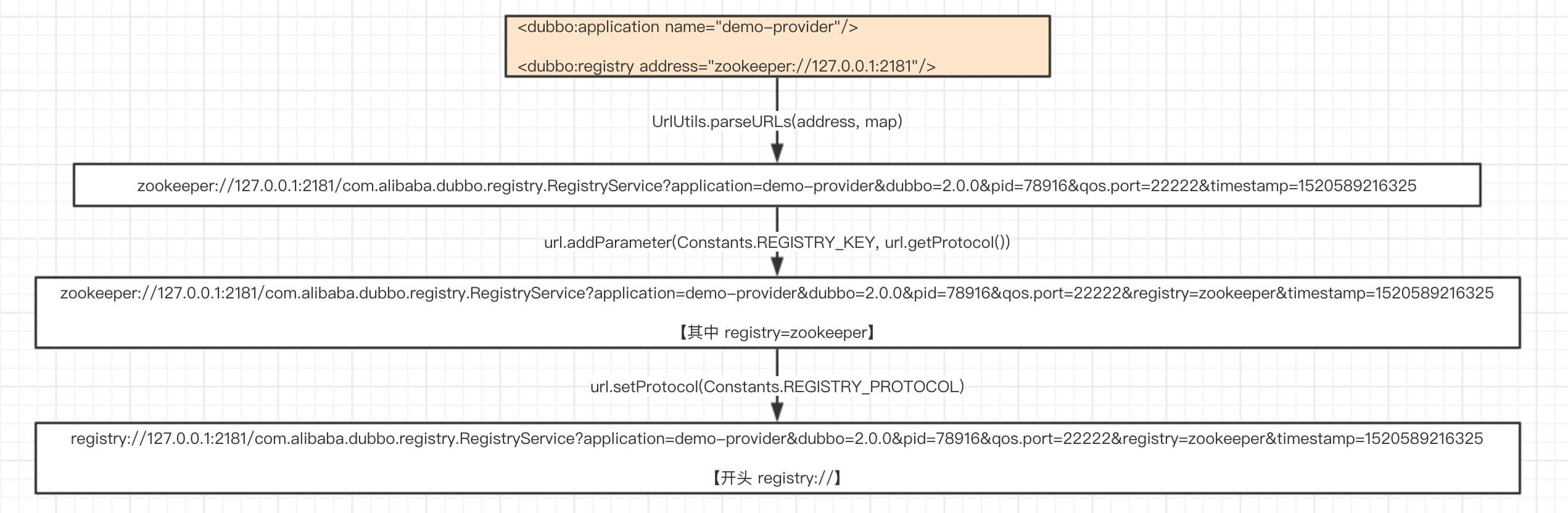 #loadRegistries(provider) 方法,加载注册中心 com.alibaba.dubbo.common.URL 数组。代码如下: