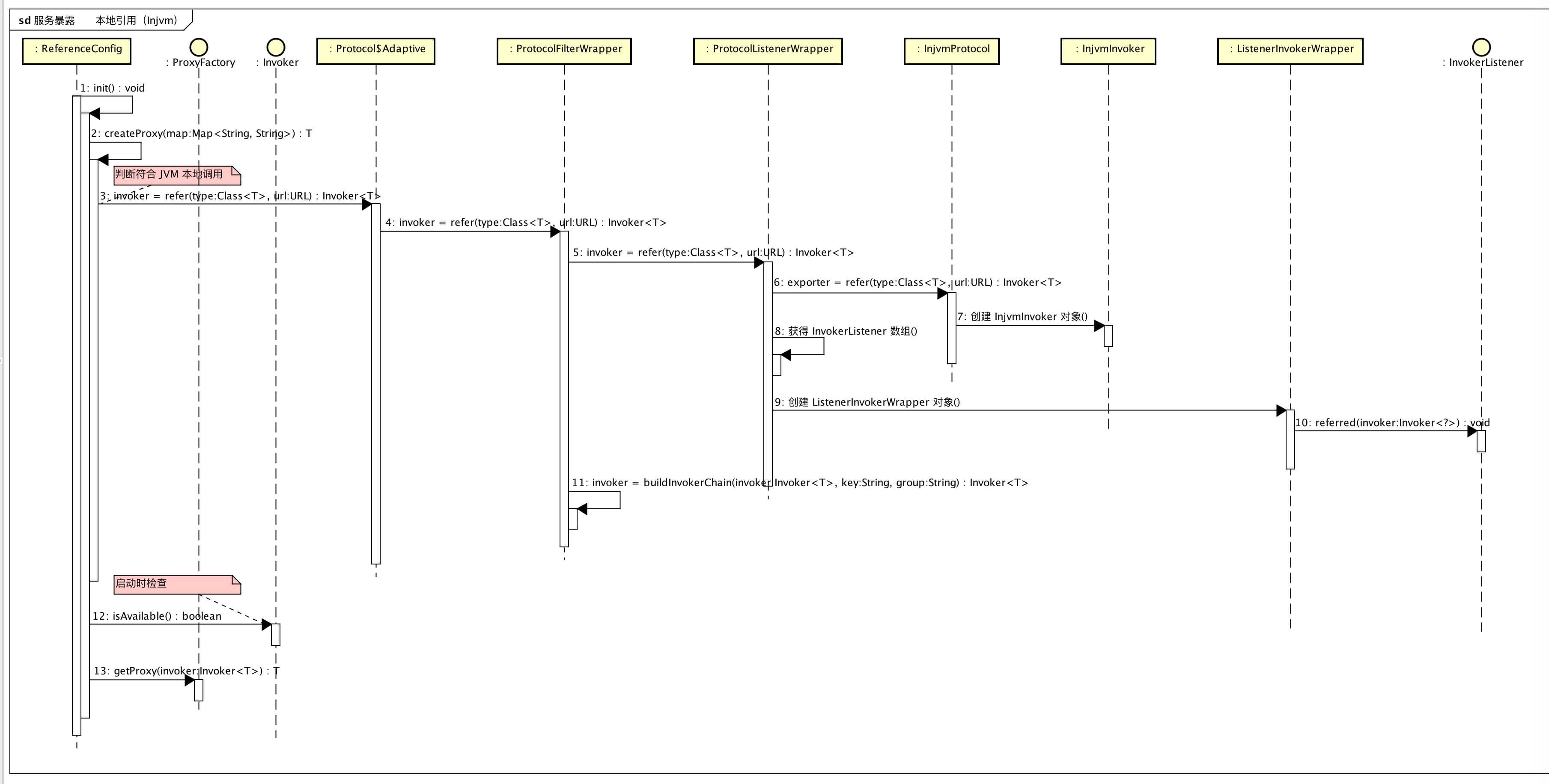- 第 10 至 13 行:当 protocol = injvm 时,本身已经是 Injvm 协议了,走正常流程即可。
