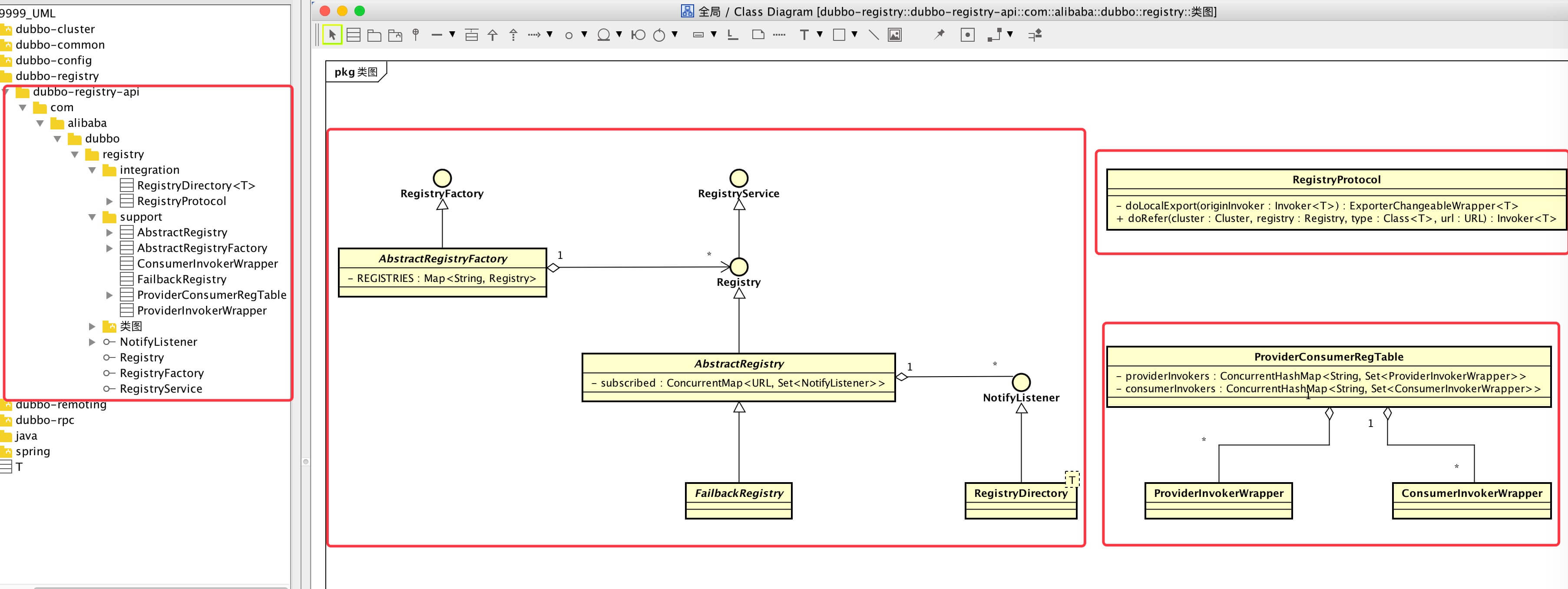 plain // The lock for the acquisition process of the registry private static final ReentrantLock LOCK = new ReentrantLock(); /** * Registry 集合 * * key:{@link URL#toServiceString()} */ // Registry Collection Map<RegistryAddress, Registry> private static final Map<String, Registry> REGISTRIES = new ConcurrentHashMap<String, Registry>();