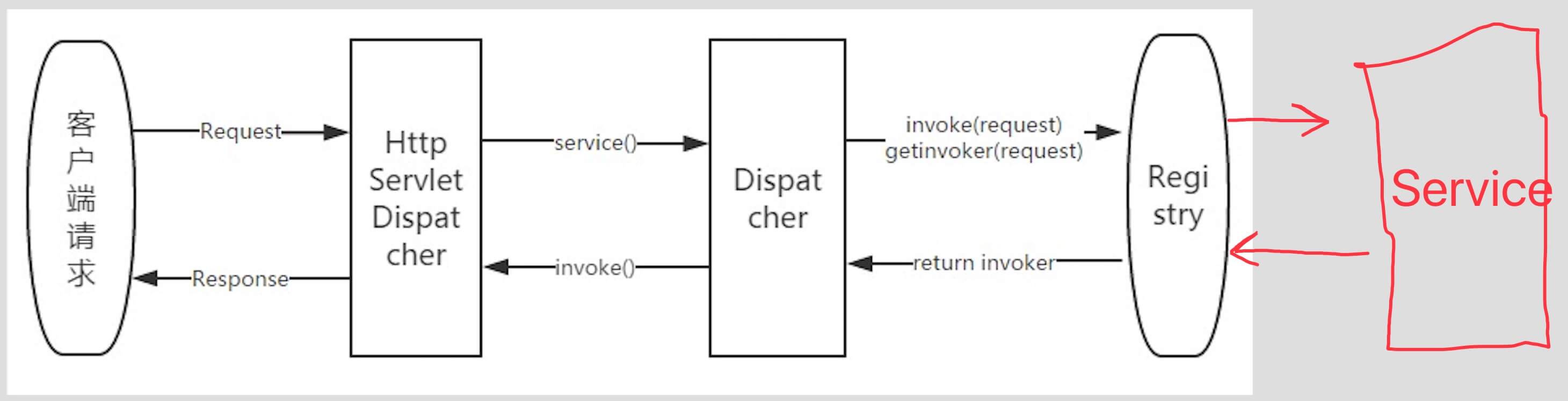 - 当客户端请求过来时会根据请求中的相对路径去 Registry 中查找对应的 Invoker 对象,然后执行并将处理结果返回。