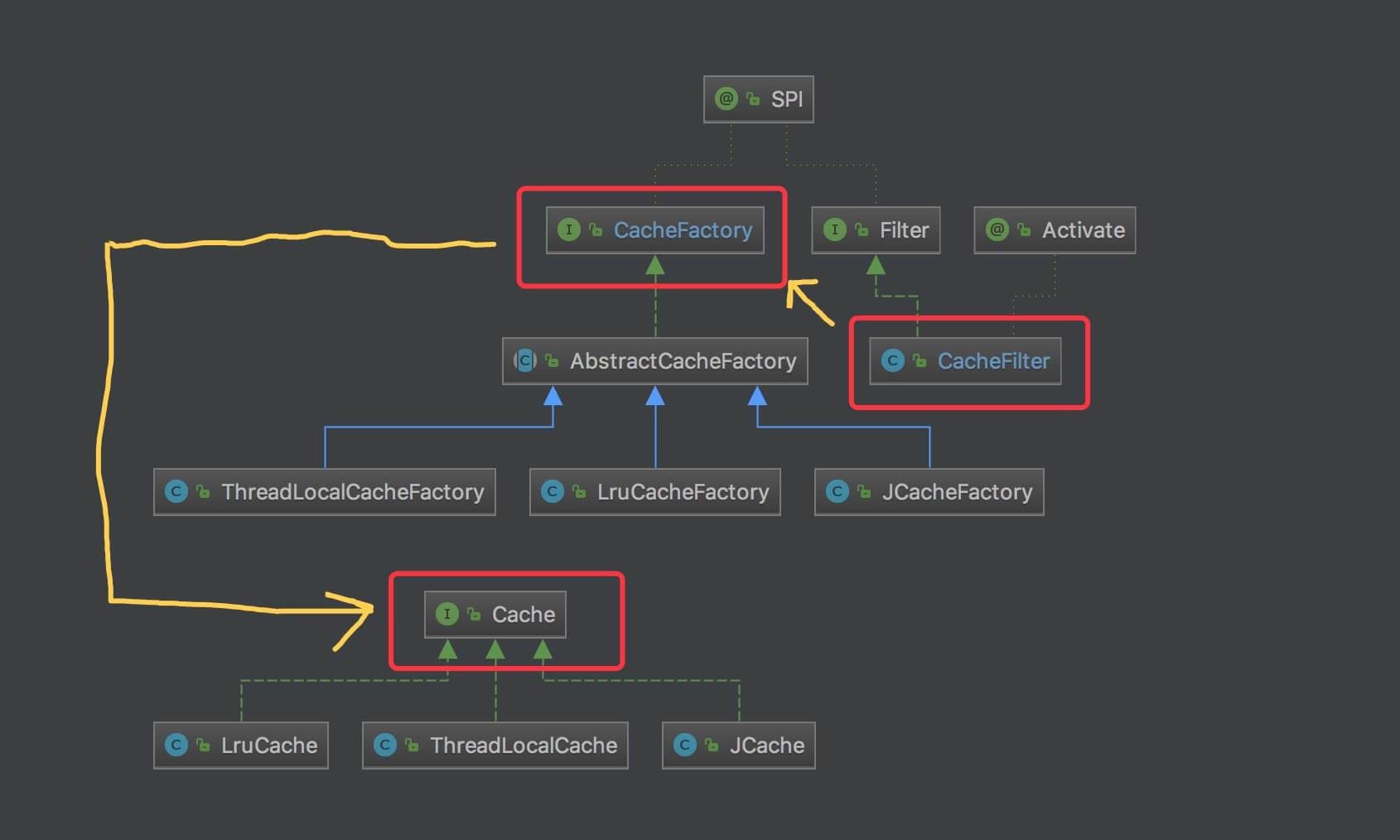 com.alibaba.dubbo.cache.filter.CacheFilter ,实现 Filter 接口,缓存过滤器实现类。代码如下: