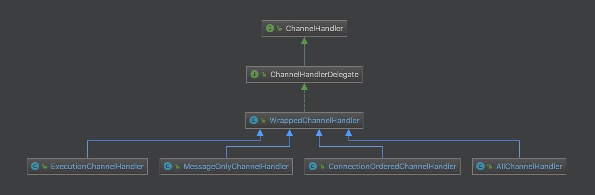 WrappedChannelHandler 是实现 ChannelHandlerDelegate 的抽象类,下文再看。