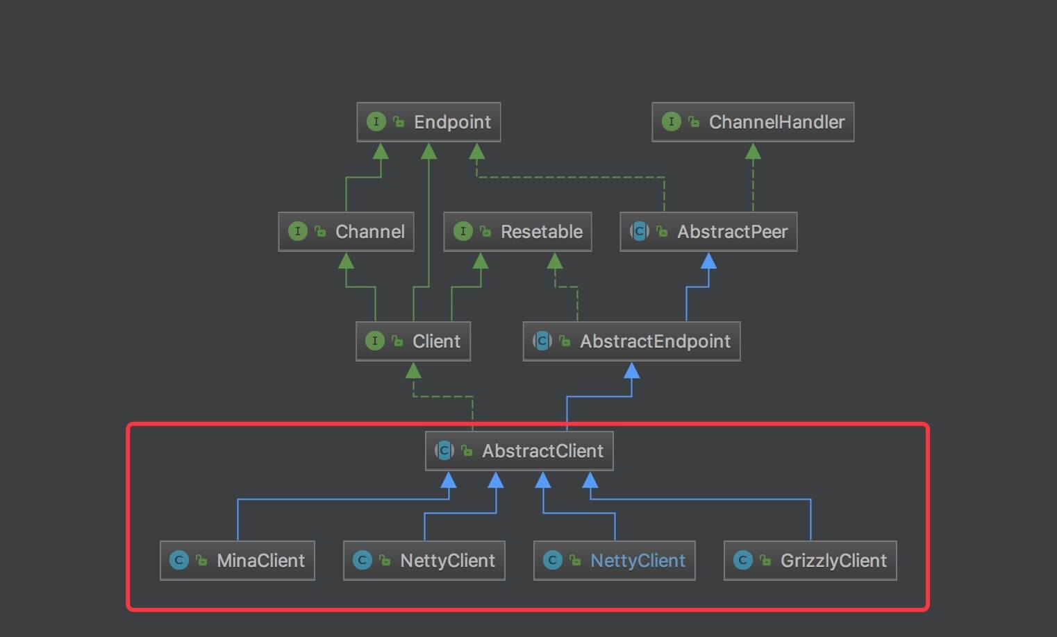 - 参见代码:[传送门](https://github.com/YunaiV/dubbo/blob/7fad710c2dbf66356d5e7b7995e843b8f6225652/dubbo-remoting/dubbo-remoting-api/src/main/java/com/alibaba/dubbo/remoting/transport/AbstractPeer.java#L114-L141)