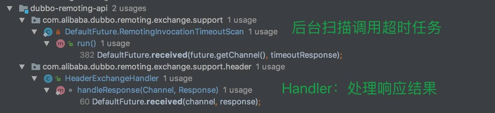 - 第 21 行:返回 DefaultFuture 对象。从代码的形式上来说,有点类似线程池提交任务,返回 Future 对象。 看到 DefaultFuture 的具体代码,我们就会更加理解了。