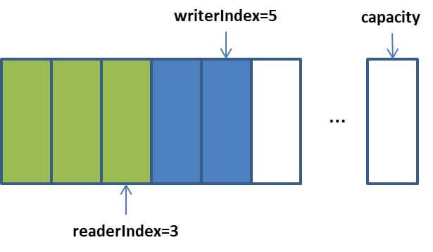 plain /** * 读取位置 */ private int readerIndex; /** * 写入位置 */ private int writerIndex; /** * 标记的读取位置 */ private int markedReaderIndex; /** * 标记的写入位置 */ private int markedWriterIndex;