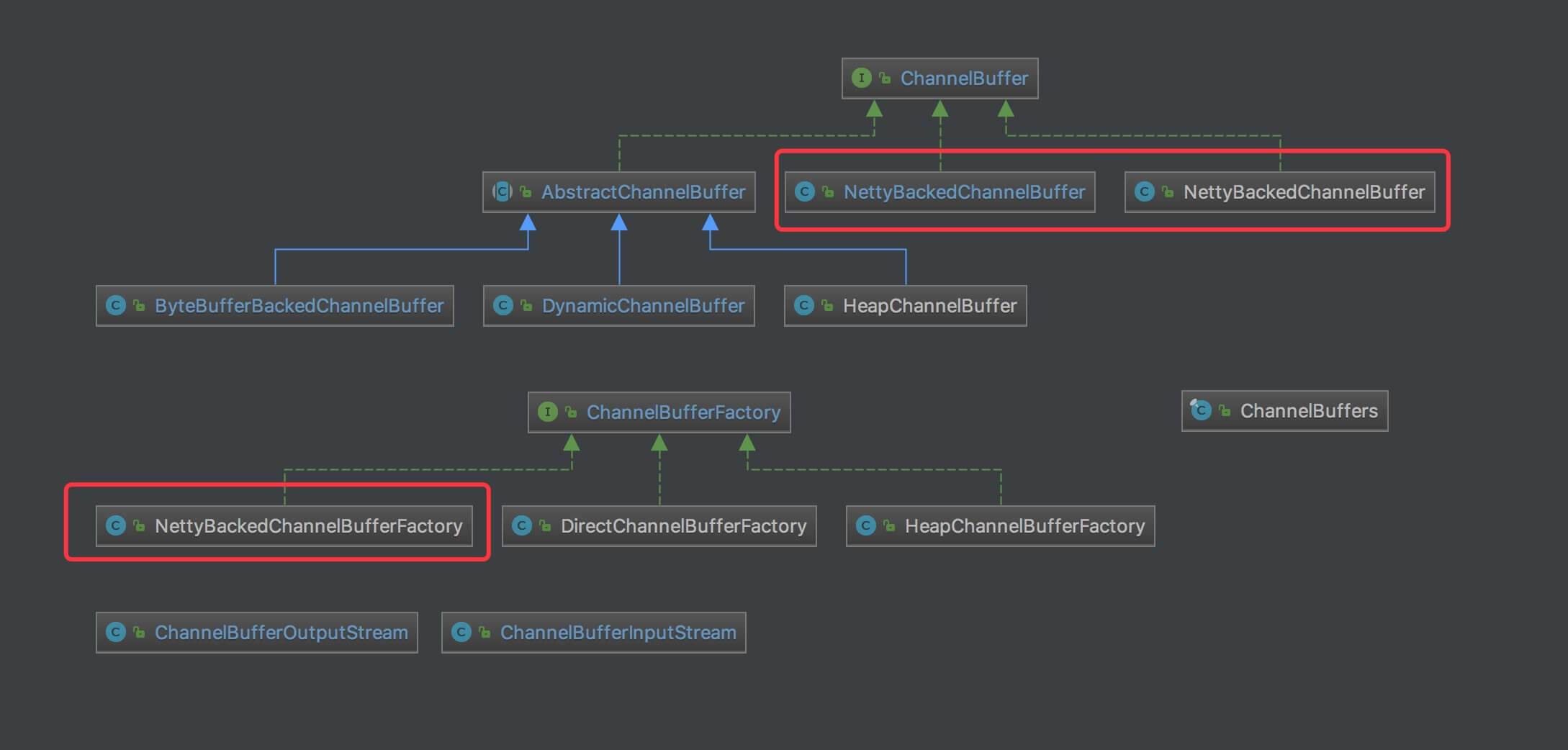 ,提供创建、比较 ChannelBuffer 等公用方法。如下图所示: