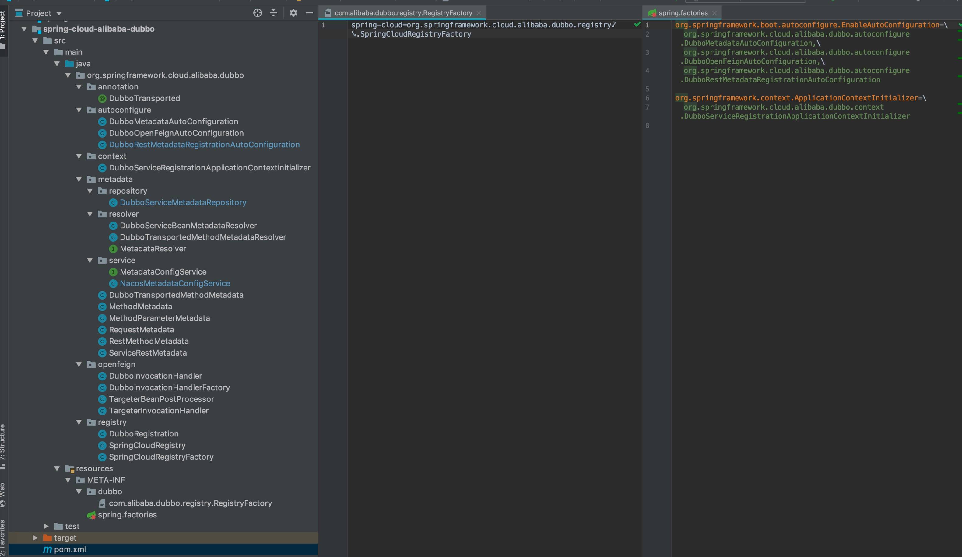 ```plain text plain spring-cloud=org.springframework.cloud.alibaba.dubbo.registry.SpringCloudRegistryFactory