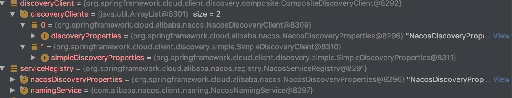- <2> 处,获得 DiscoveryClient 对象。此处,如果我们使用 Nacos 作为注册中心,那么返回的 Composite DiscoveryClient 对象,包含 org.springframework.cloud.alibaba.nacos.NacosDiscoveryClient 对象。