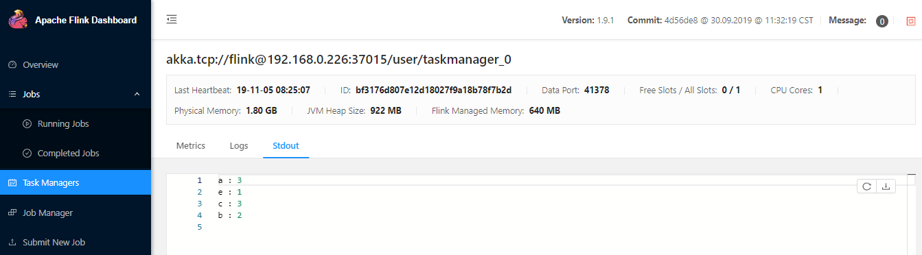 05.11.2019 08:19:53 : ba2b1cc41a5e241c32d574c93de8a2bc : Socket Window WordCount (RUNNING)