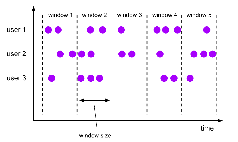 // 滚动计数窗口,每1000次点击则计算一次countWindow(1000)// 滑动计数窗口,每10次点击发生后,则计算过去1000次点击的情况countWindow(1000,10)
