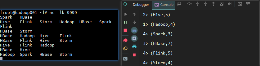 final StreamExecutionEnvironment env = StreamExecutionEnvironment.getExecutionEnvironment();// 接收socket上的数据输入DataStreamSource<String> streamSource = env.socketTextStream("hadoop001", 9999, "\n", 3);streamSource.flatMap(new FlatMapFunction<String, Tuple2<String, Long>>() { @Override public void flatMap(String value, Collector<Tuple2<String, Long>> out) throws Exception { String[] words = value.split("\t"); for (String word : words) { out.collect(new Tuple2<>(word, 1L)); } }}).keyBy(0).timeWindow(Time.seconds(3)).sum(1).print(); //每隔3秒统计一次每个单词出现的数量env.execute("Flink Streaming");