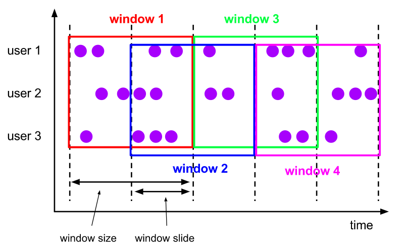 // 每隔3秒统计一次过去1分钟内的数据timeWindow(Time.minutes(1),Time.seconds(3))