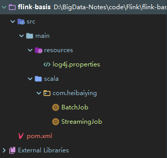 基于 Maven 骨架创建的项目主要提供了以下核心依赖:其中 flink-scala 用于支持开发批处理程序 ;flink-streaming-scala 用于支持开发流处理程序 ;scala-library 用于提供 Scala 语言所需要的类库。如果在使用 Maven 骨架创建时选择的是 Java 语言,则默认提供的则是 flink-java 和 flink-streaming-java 依赖。