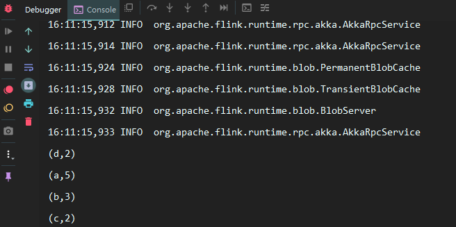 本机不需要配置其他任何的 Flink 环境,直接运行 Main 方法即可,结果如下: