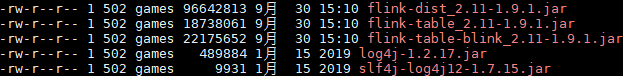 需要特别注意的以上依赖的 scope 标签全部被标识为 provided ,这意味着这些依赖都不会被打入最终的 JAR 包。因为 Flink 的安装包中已经提供了这些依赖,位于其 lib 目录下,名为 flink-dist_*.jar ,它包含了 Flink 的所有核心类和依赖: