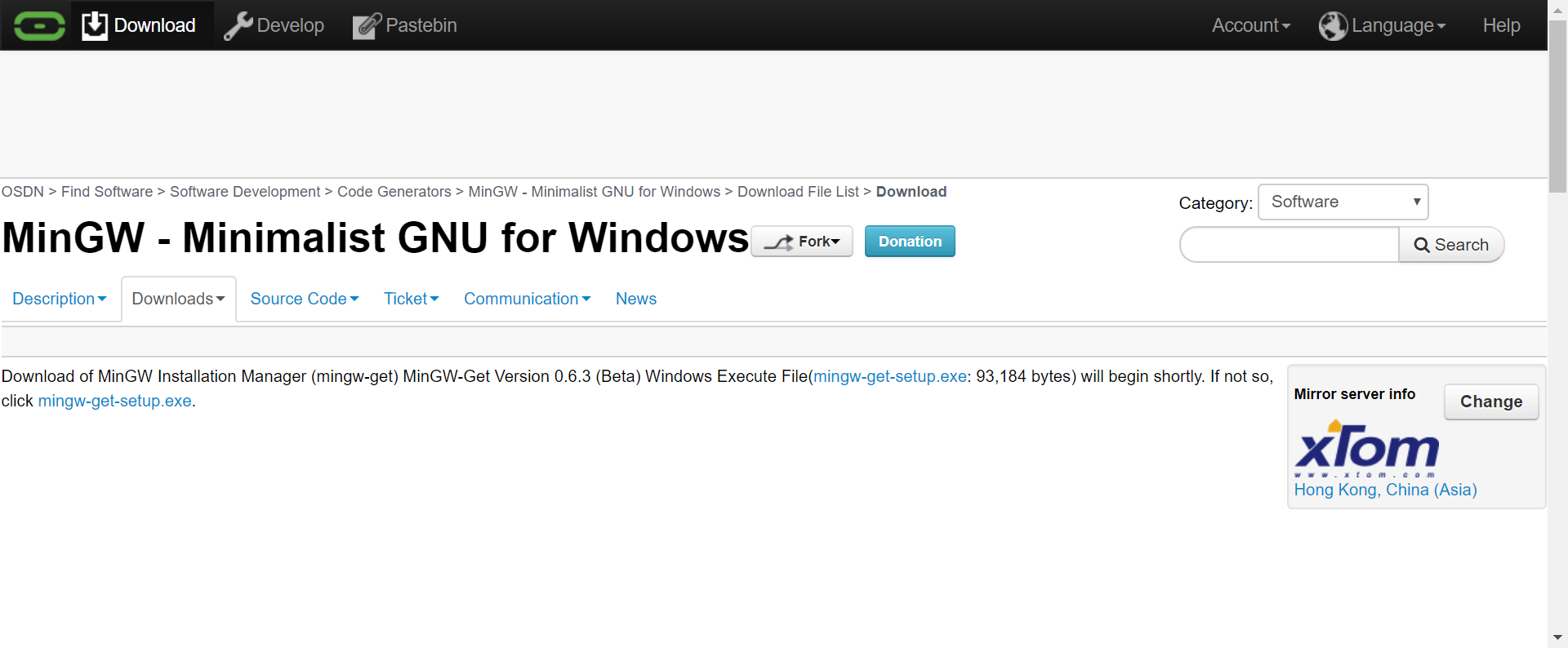为了在 Windows 上安装 GCC,您需要安装 MinGW。为了安装 MinGW,请访问 MinGW 的主页 www.mingw.org,进入 MinGW 下载页面,然后进行安装,