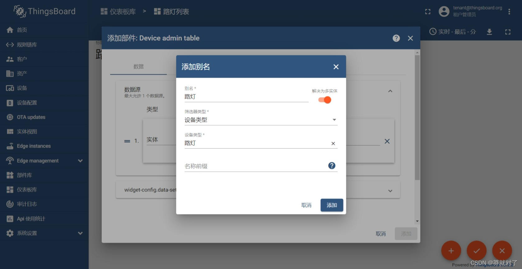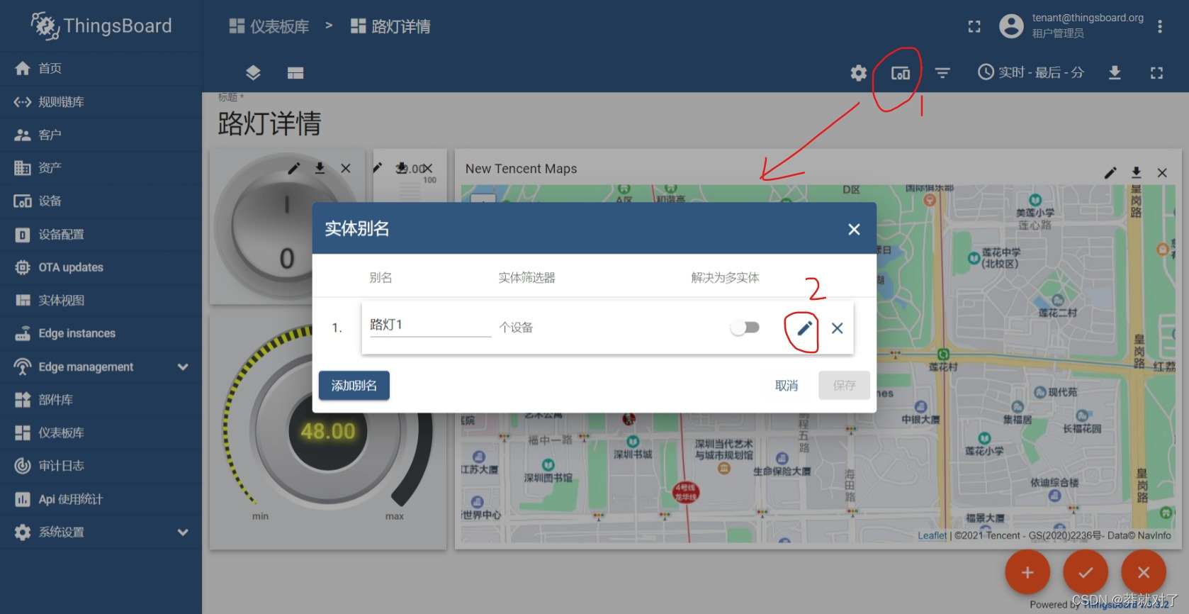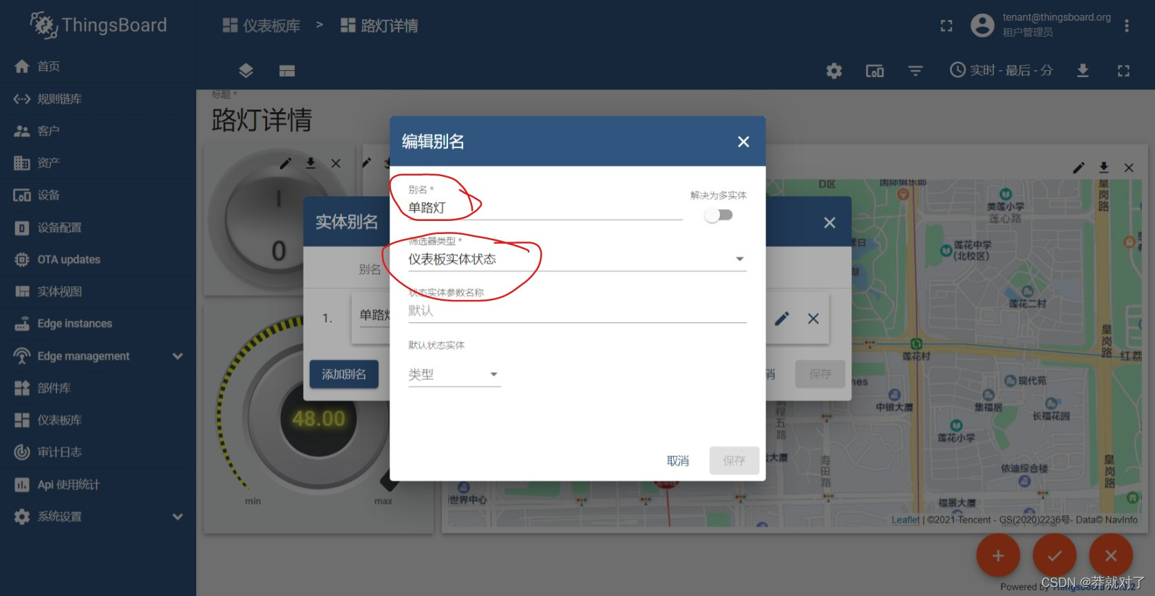 记得我们详情里选的别名是 路灯1,现在有两个路灯了,路灯2也得有姓名,我们得让别名随着设备走。