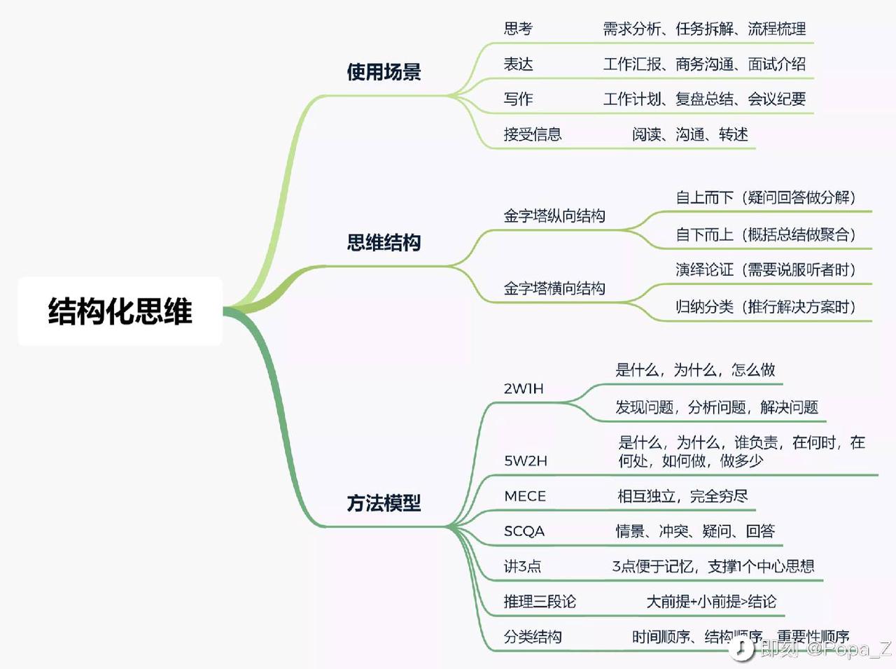 以上便是结构化思维部分应用场景和方法模型的简单介绍,要了解更全面的内容推荐去看《金字塔原理》与《结构思考力2》这两书,快餐的话推荐知乎问答“如何解决思维混乱、讲话没条理的情况?”。