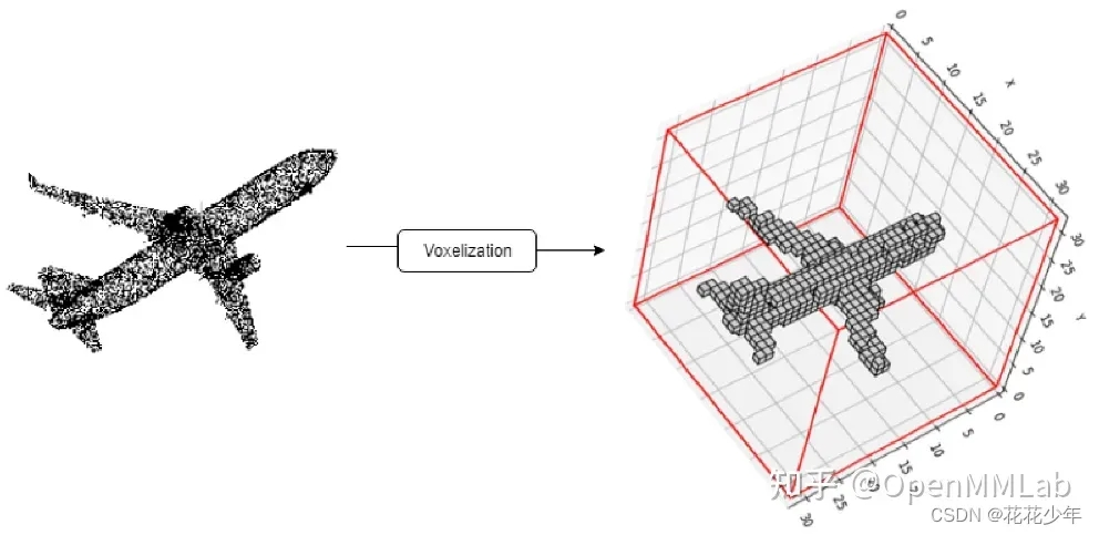 voxel-base 的模型中常常使用 voxelization(体素化)。在实际使用过程中我们都希望我们的模型又快有准,所以为了可以权衡速度和精度,VoxelNet 提出了使用 voxelization(体素化)的方法来处理点云。 点云是三维空间中的物体表示,因此一个自然的思路是将空间在长宽高三个方向划分格子,每个格子称为 voxel(体素),通过处理将其转换为 3 维数组的形式,再使用 3D 卷积和 2D 卷积的网络处理