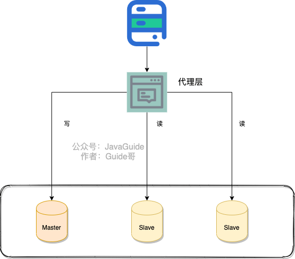 我们可以在应用和数据中间加了一个代理层。应用程序所有的数据请求都交给代理层处理,代理层负责分离读写请求,将它们路由到对应的数据库中。