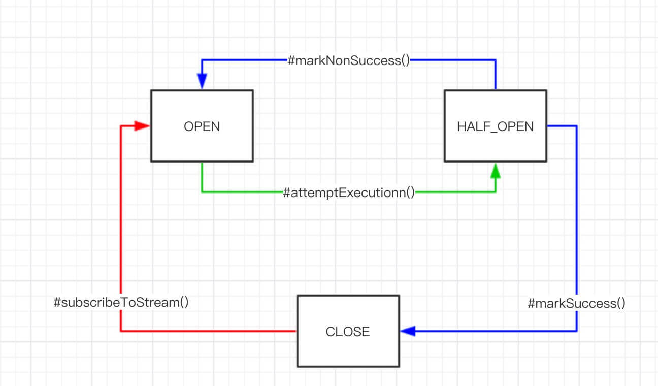- 红线健康 :初始时,断路器处于 CLOSED 状态,链路处于 状态。当满足如下条件,断路器从 CLOSED 变成 OPEN 状态: