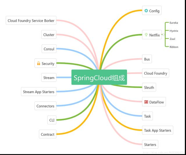 Spring Cloud的 组件相当繁杂,拥有诸多子项目。如下脑图所示:
