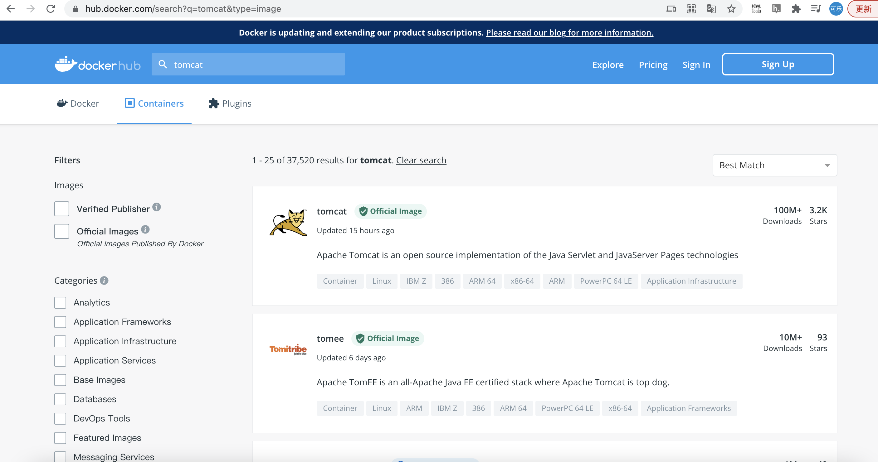 比如下载最新版 Tomcat 镜像: docker pull tomcat