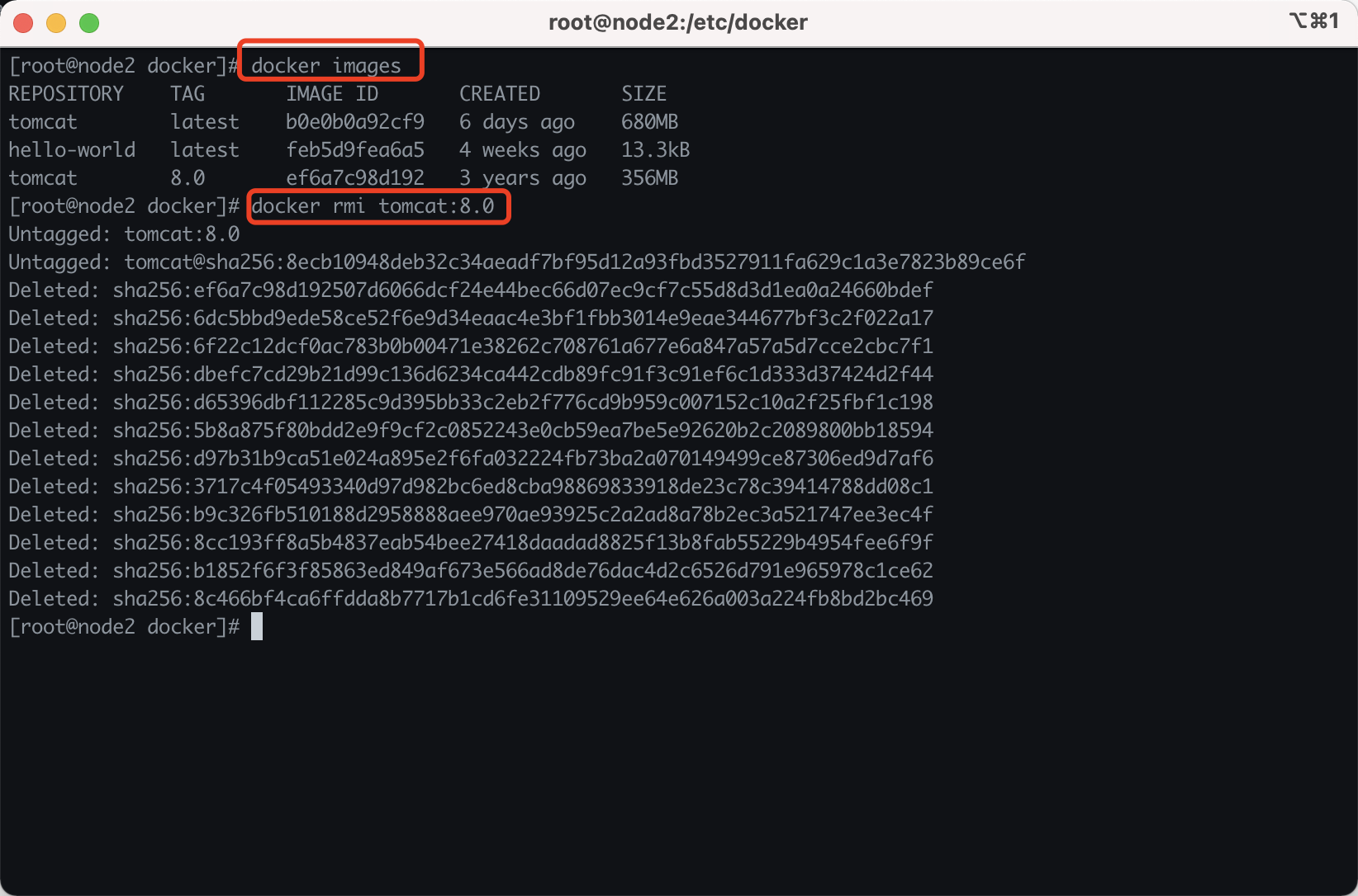 docker rmi IMAGE_ID1 IMAGE_ID2 … # 批量删除