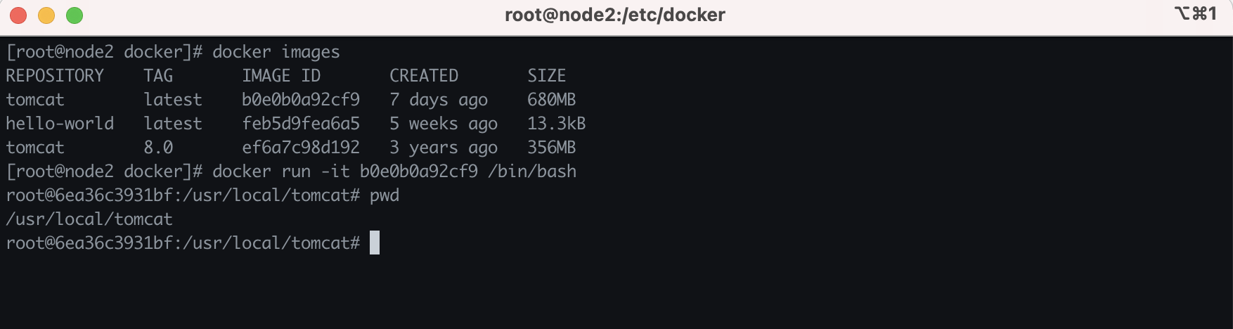 ①、使用run方式在创建时进入 docker run -it [镜像id/镜像名] /bin/bash