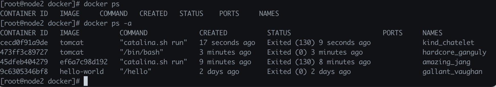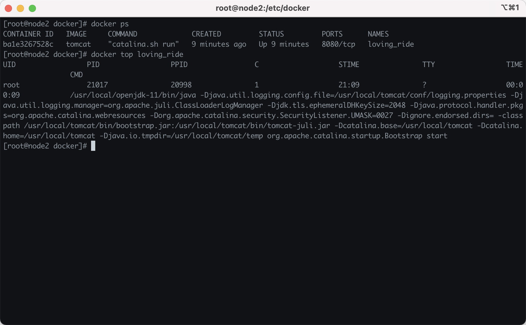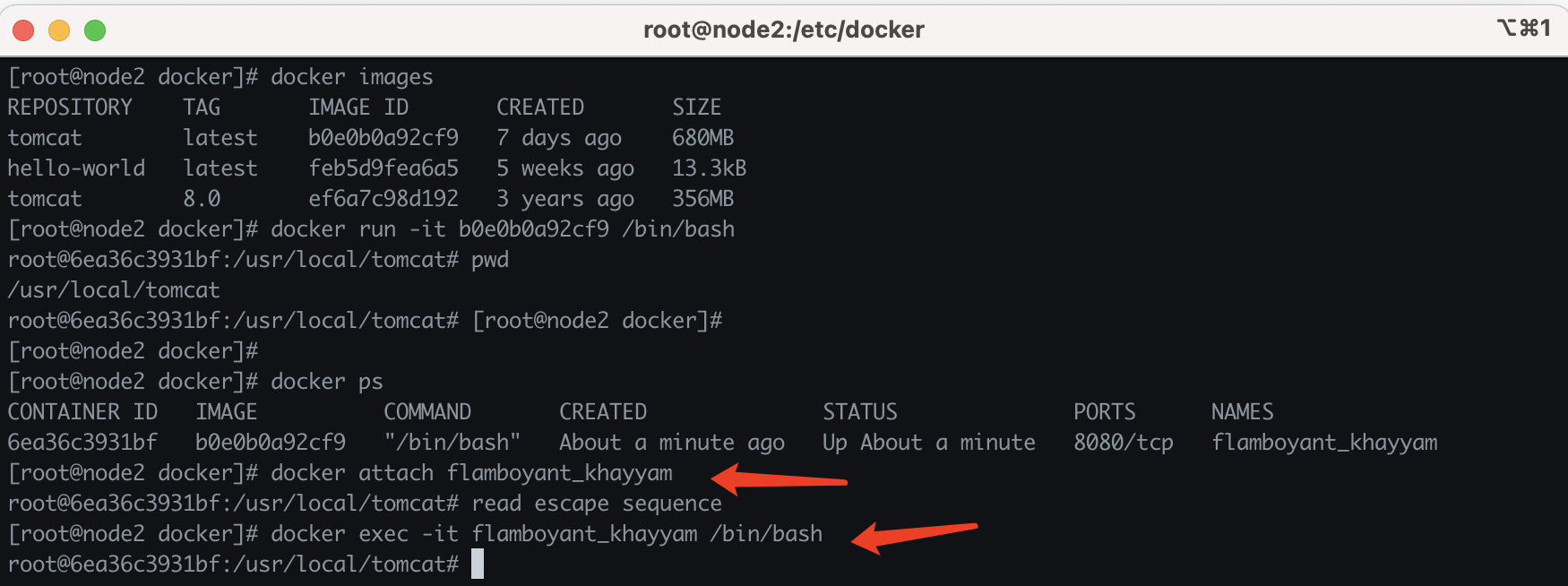 直接进入 容器启动命令的终端,不会启动新进程,多个attach连接共享容器屏幕,参数:–sig-proxy=false 确保CTRL-D或CTRL-C不会关闭容器docker attach –sig-proxy=false 容器名称/ 容器ID