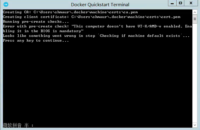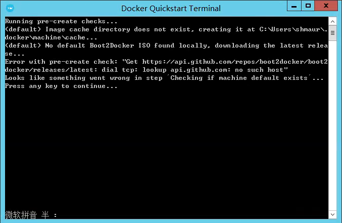 这个需要下载 boot2docker,在下载的时候出错了,可以去官网去下载,我已经打包好,可以直接进行下载。原因可能因为网络慢最终停止,也可能是被 Q 了。