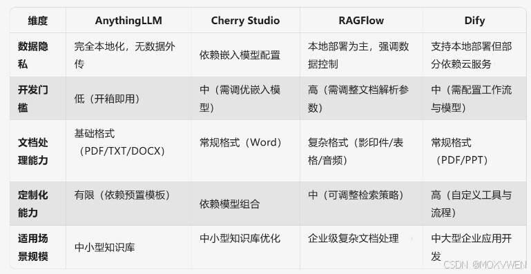 综合对比分析:AnythingLLM、Cherry Studio、RAGFlow 和 Dify_cherrystudio和anythingllm哪个好用
