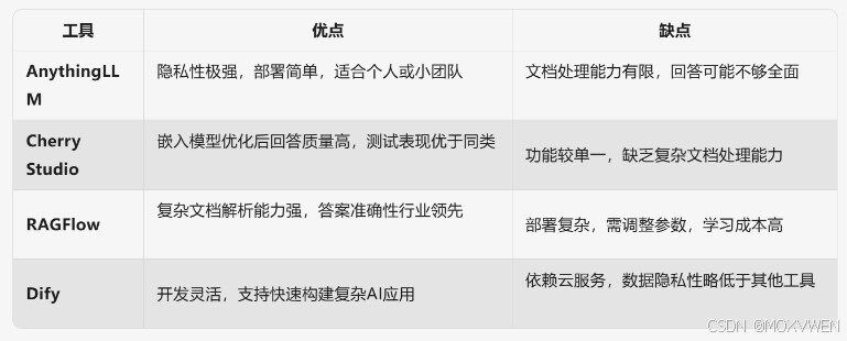 - RAGFlow:在专业领域的文档处理能力不可替代,适合高精度需求