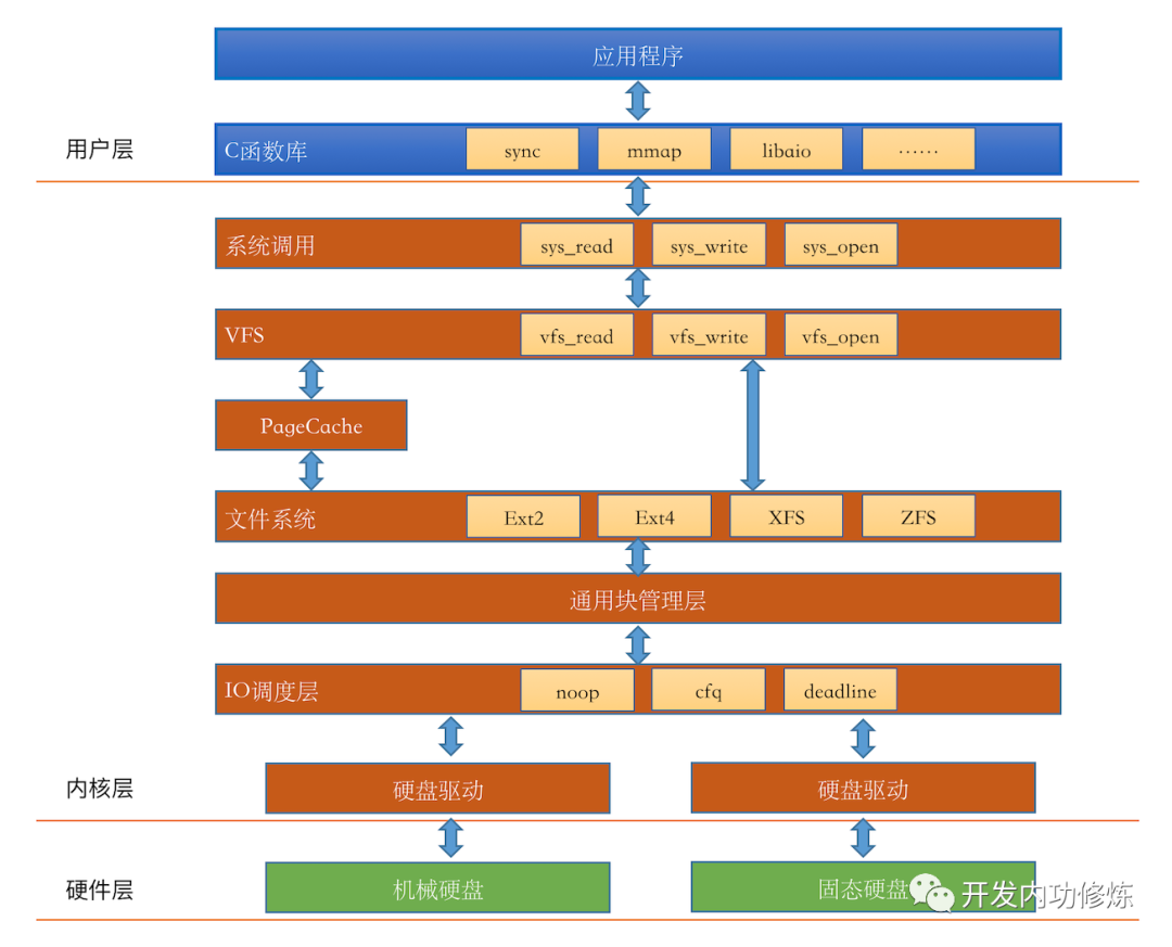我们在前面也分享了几篇文章讨论了上图图中的硬件层,还有文件系统模块。但通过这个IO栈我们发现,我们对Linux文件的IO的理解还是远远不够,还有好几个内核组件:IO引擎、VFS、PageCache、通用块管理层、IO调度层等模块我们并没有了解太多。别着急,让我们一一道来: