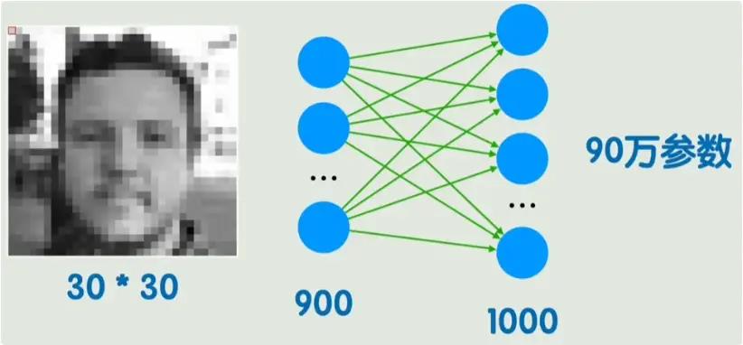 例如:灰度图 30×30 → 900 个输入像素;若接一个 1000 单元的隐藏层,参数量:
