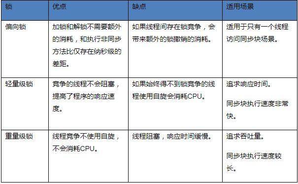优势:偏向锁只需要在置换 ThreadID 的时候依赖一次 CAS 原子指令,其余时刻不需要 CAS 指令(相比其他锁)。隐患:由于一旦出现多线程竞争的情况就必须撤销偏向锁,所以偏向锁的撤销操作的性能损耗必须小于节省下来的 CAS 原子指令的性能消耗(这个通常只能通过大量压测才可知)。对比:轻量级锁是为了在线程交替执行同步块时提高性能,而偏向锁则是在只有一个线程执行同步块时进一步提高性能