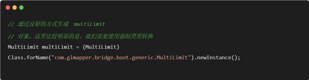 对于上述代码,在运行期,如果反射的类型不是 MultiLimit 类,那么一定会报 java.lang.ClassCastException 错误。