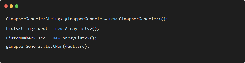 上面的代码在编译器并不会报错,但是当进入到 testNon 方法内部操作时(比如赋值),对于 dest 和 src 而言,就还是需要进行类型转换。