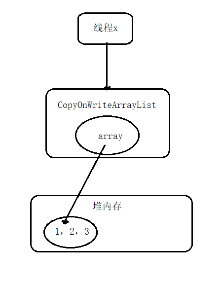 假设某一时刻CopyOnWriteArrayList中有1,2,3中三个元素,如下图所示:
