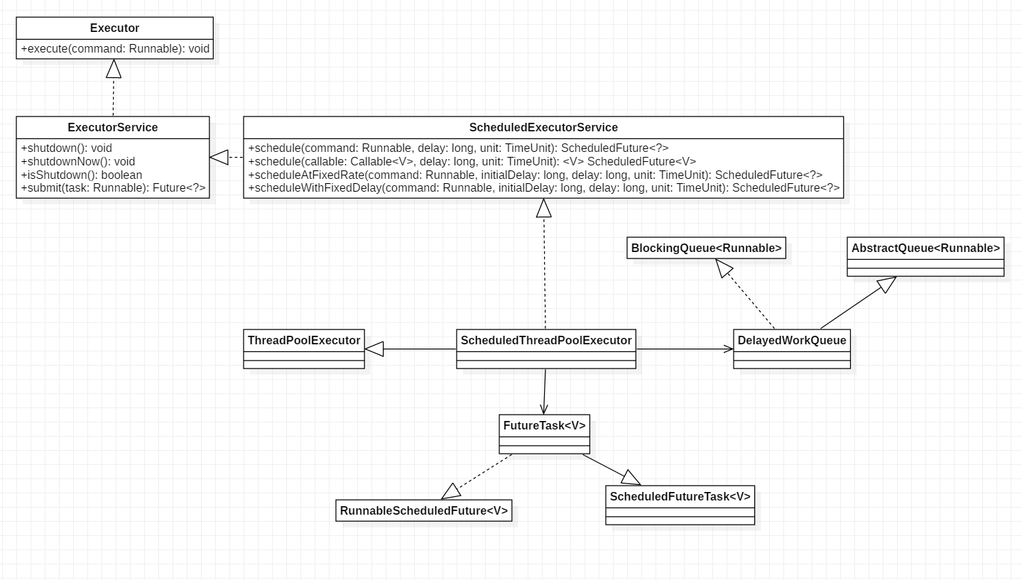 ScheduledThreadPoolExecutor继承了ThreadPoolExecutor并实现了ScheduledExecutorService接口。