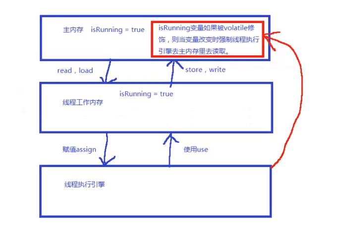 volatile的作用就是强制线程到主内存(共享内存)里去读取变量,而不是去线程工作内存区里去读取,从而实现了多个线程间的变量可见。也就满足线程安全的可见性