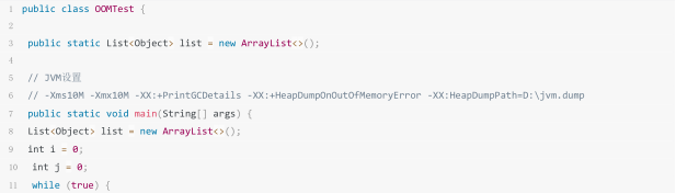 也可以设置内存溢出自动导出dump文件(内存很大的时候,可能会导不出来)