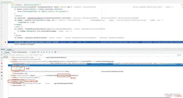 val expression = spelExpressionParser.parseExpression(detect.contentSpel) val argMap = joinPoint.args.mapIndexed { index, any -> "arg${index+1}" to any