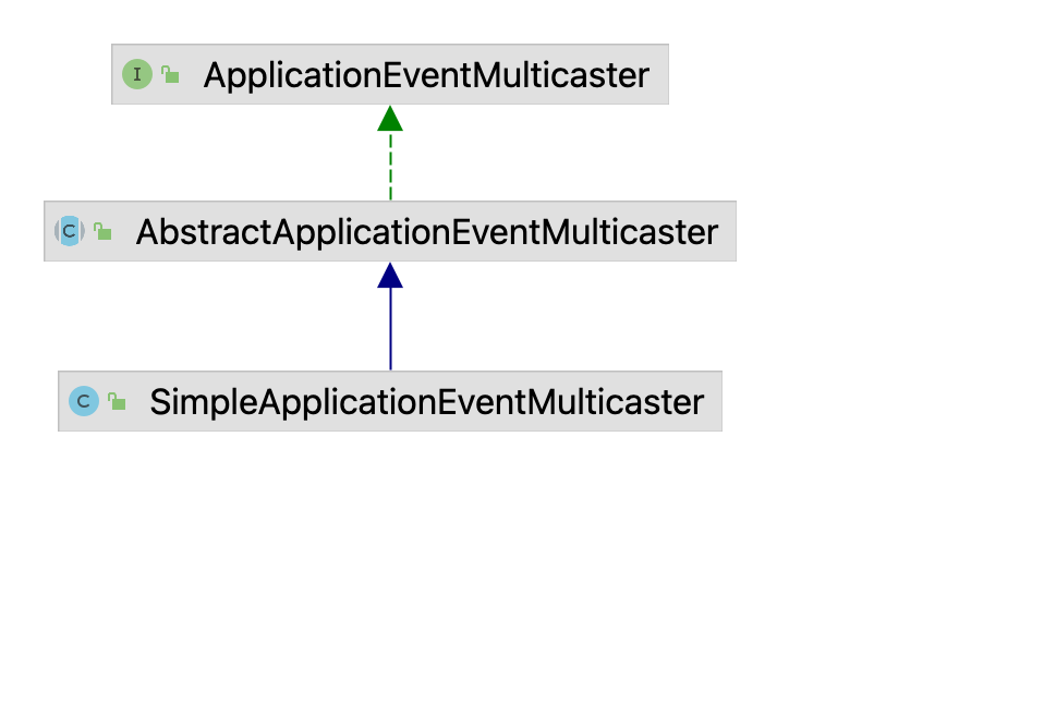 ApplicationEventMulticaster 的继承关系比较简单,它也只有一个实现类,所以分析起来相对要容易一些: