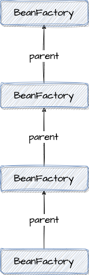 只要是 HierarchicalBeanFactory 的子类就能配置父子关系。父子关系图如下: